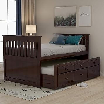 Lz Leisure Zone Kids Captain S Bed Twin Daybed With Trundle Bed And Storage Drawers Espresso Twin Amazon In Home Kitchen
