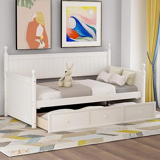 Twin Captains Bed Storage daybed with Trundle and Drawers for Kids Guests White 28990 Linenspa 6-Inch Spring Mattress - Twin 7999 Linenspa 8 Inch Memory Foam and Innerspring Hybrid Medium-Firm Feel-Twin Mattress White 12999 Shop products that look good together. Get Special Discounts Today. It is made of solid pine wood and it includes roller glide drawers that assure plenty of storage space.
