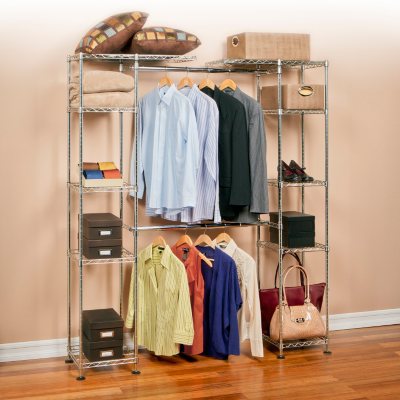 Tame your wardrobe with Seville Classics Expandable Closet Organizer System. I put links to each Seville Classics Double-Rod Expandable Clothes Rack Closet Organizer System 58. Unit consists of two towers connected by two expandable hanging rods.