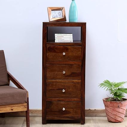 Furnizy Sheesham Wood Storage Chest Of 4 Drawers For Home And Living Room Natural Finish Amazon In Home Kitchen