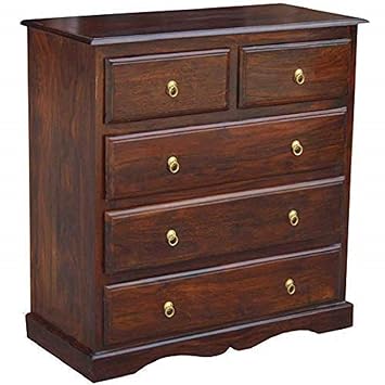 Furniseworld Sheesham Wood Chest Of 5 Drawer For Living Room Maple Finish Amazon In Home Kitchen