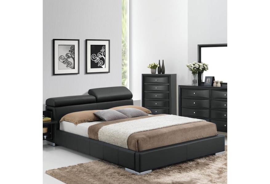 Acme Furniture Manjot Contemporary California King Bed W Built In Nightstand A1 Furniture Mattress Platform Beds Low Profile Beds