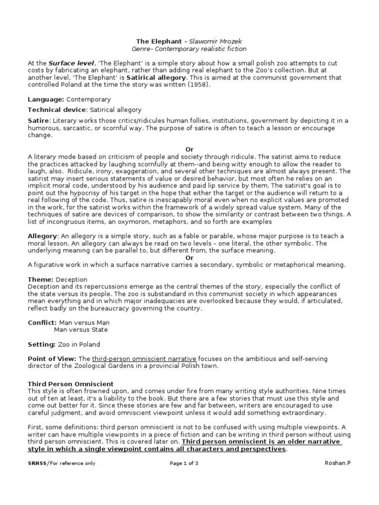 The Elephant Short Story Summary Satire Narration