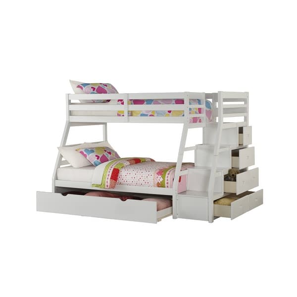 Acme Furniture Jason White Twin Over Full Bunk Bed With Storage Ladder And Trundle Overstock 15053992