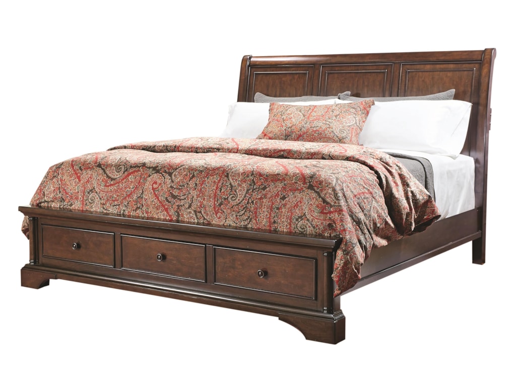 101 Artisan Choices Rustic Cherry Queen Sleigh Bed W Footboard Storage Squan Furniture