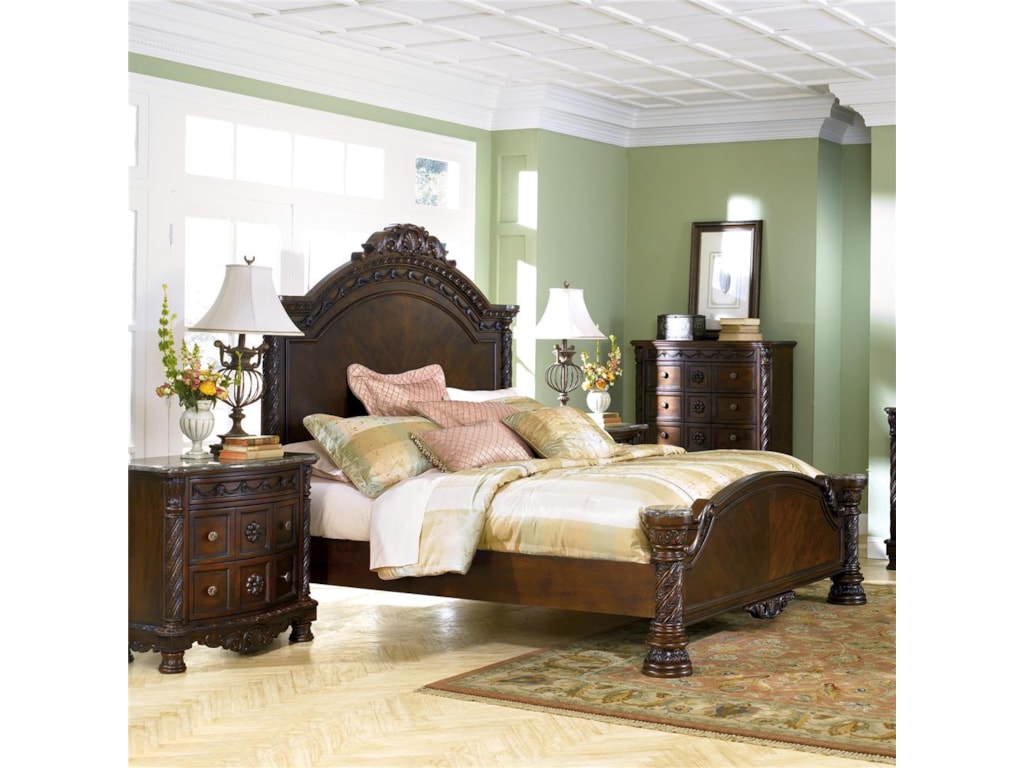 North Shore Panel Bed And Bench A Rich Traditional Design And Exquisite Details The Opulent Brown Color Flows Beautifully Over T Panel Bed Bed Ashley Furniture