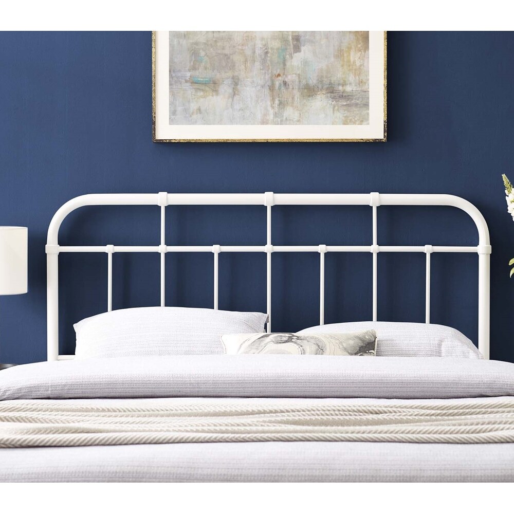 Queen headboard king headboard upholstered headboard white headboard tufted bed rustic headboards black headboard padded headboard. The iron was painted white which looks just charming with a pure white bedding set. Choose a headboard to match your personal style whether it be upholstered wooden or even carved for a more traditional look.