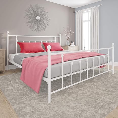 Amazon Com Dhp Manila Metal Bed With Victorian Style Headboard And Footboard King Size White Furniture Decor